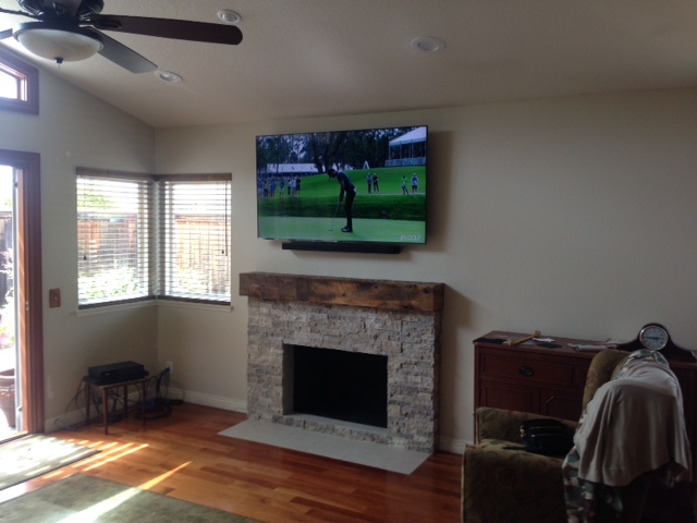 Custom TV Installation Over Stone Fireplace w/ in wall Hidden Wiring ( Laguna Beach )